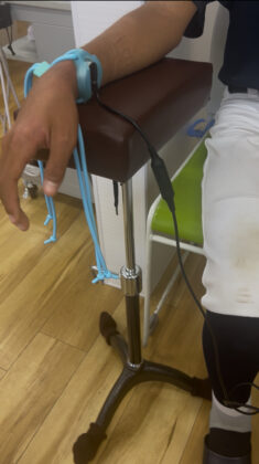 手首を骨折してしまったとのことで、4週間後にどうしても出場したい試合があると。