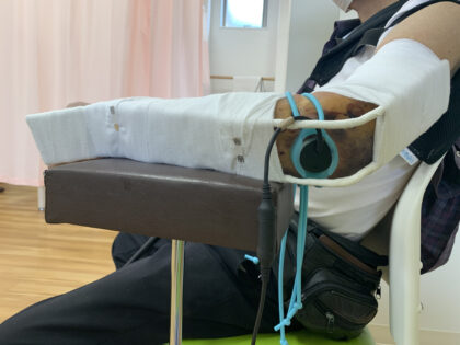 1超音波骨折治療器を使用し、骨の修復を早める。